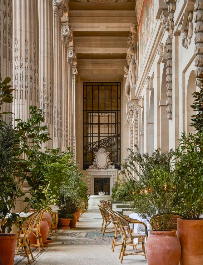 Designer Joseph Dirand has properly left the outside area to talk for itself. By including just some complementary parts equivalent to wicker chairs and cozy banquettes with pale inexperienced upholstery set between pots of greenery, he has created an idyllic city backyard, très Belle Epoque. And this time the view consists of not simply the Petit Palais however the Champs Elysées as properly.