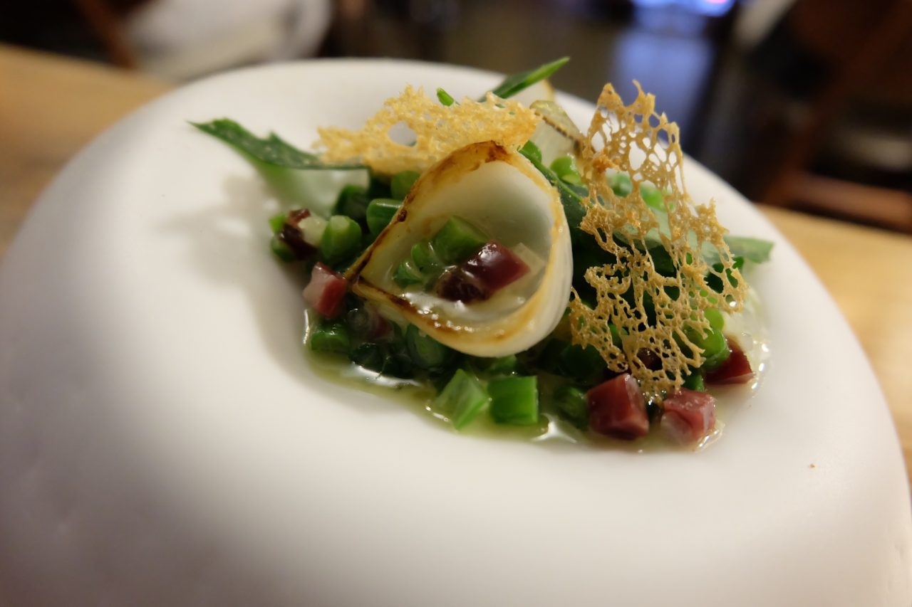 The New York Instances (2014) “The rhythm of the prix-fixe menu, which adjustments day by day, is deliberately various. Toutain composes meals so {that a} quiet dish, like seared foie gras in baked potato bouillon with black truffles, units up the drama of one other dish meant to dazzle, like a monochromatic white composition of cuttlefish with yuba (bean-curd sheet) and practically translucent Parmesan gnocchi, seasoned with the juice extracted from cooking the cheese at a really low temperature for a lot of hours.”