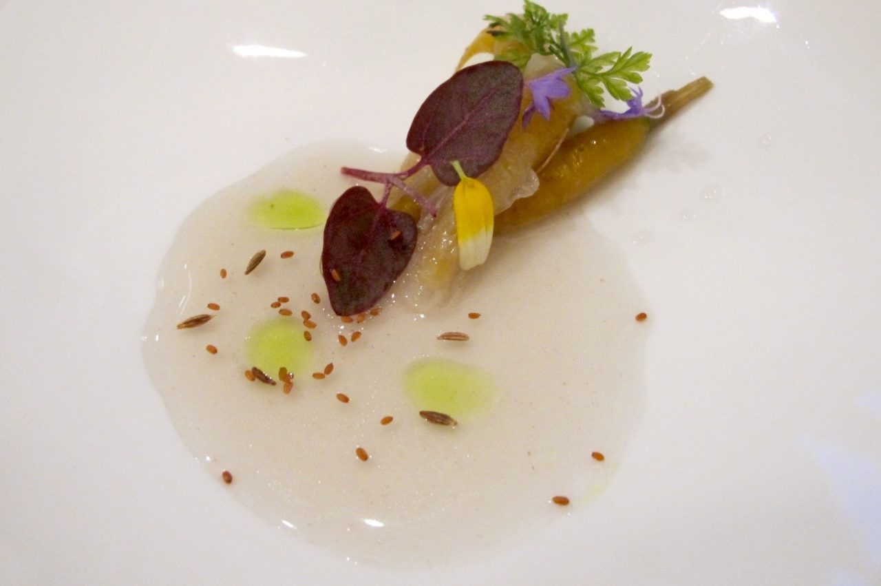 Le Monde (2015) “Ce chef n’a peur de rien. De la branche de salsifis craquant, crème de panais et chocolat blanc en amuse-bouche à la crème de chou-fleur, coco, chocolat blanc en prédessert, on va de shock en shock durant ce menu obligé.”