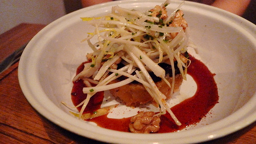 John Talbott (2011)”…sharp, clear, edgy decor…I began with the Basque (Ibaïona) charcuterie…delicate, mild ham, two forms of sausage of various spiciness and the famed boudin noir, which went on the terrifically crusted bread prefer it was made for it…