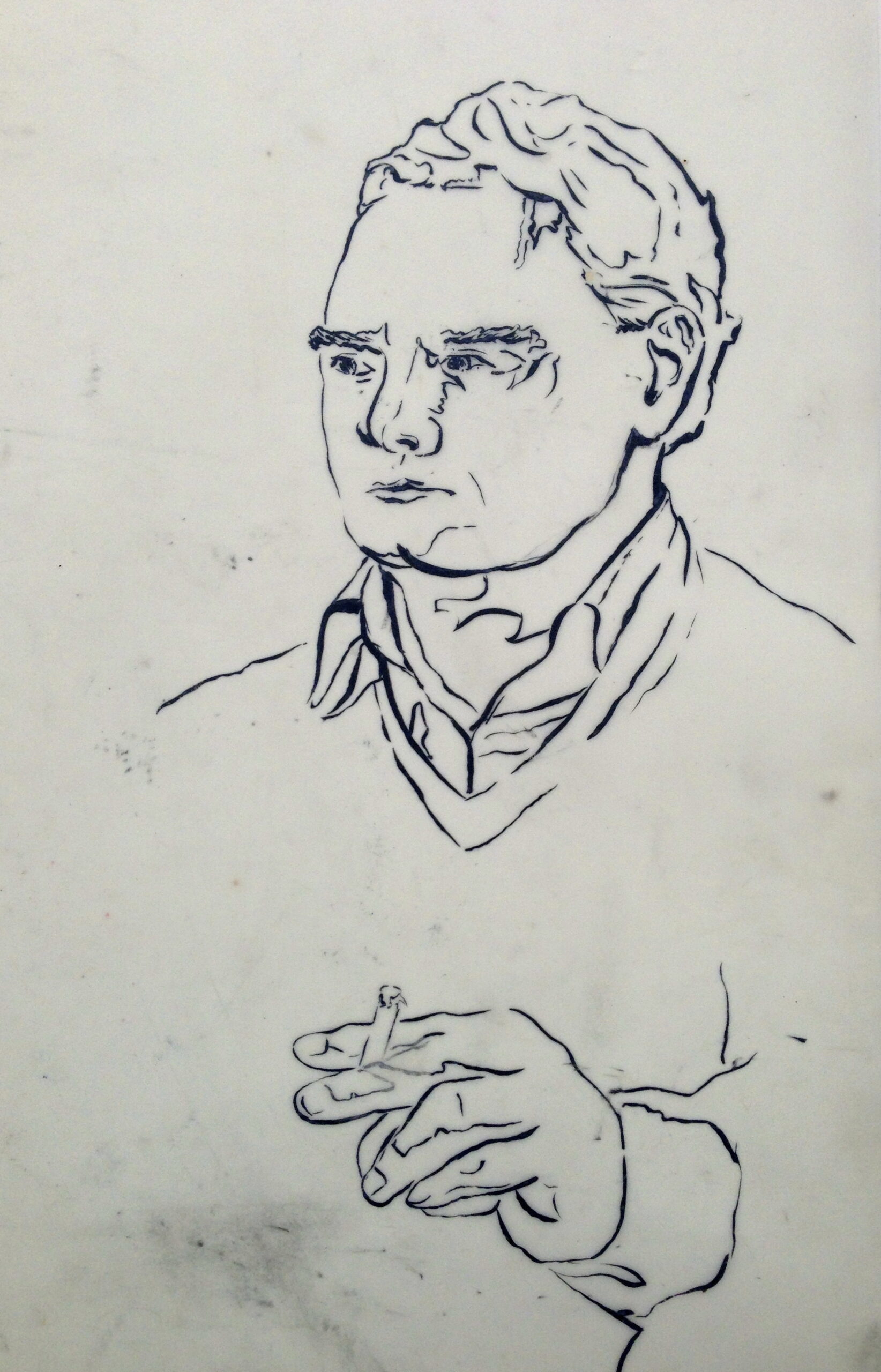 Darragh Park, Portrait of James Schuyler, 1996, ink on acetate, 10 x 8″. Personal assortment.