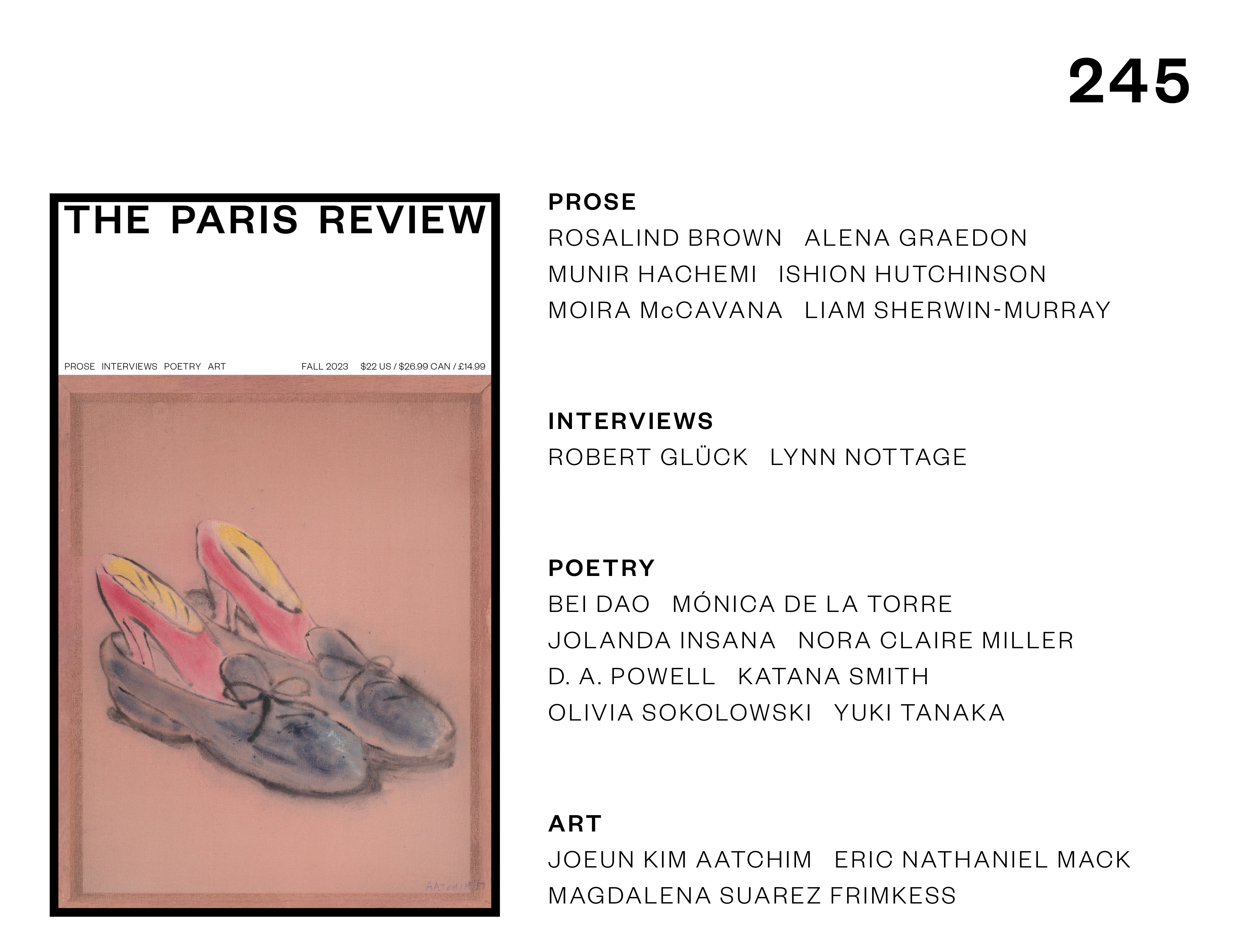 Glück, by the way, will not be a believer within the “brief story”; he prefers the conte, the story, or the piece of gossip. We’ll depart you to ponder the variations—I’m undecided I can all the time inform; it’s potential that my thoughts was some place else throughout that exact lecture—as you learn this challenge, which additionally contains an Artwork of Theater interview with Lynn Nottage, poetry by Bei Dao and D. A. Powell, and debut fiction by Liam Sherwin-Murray.