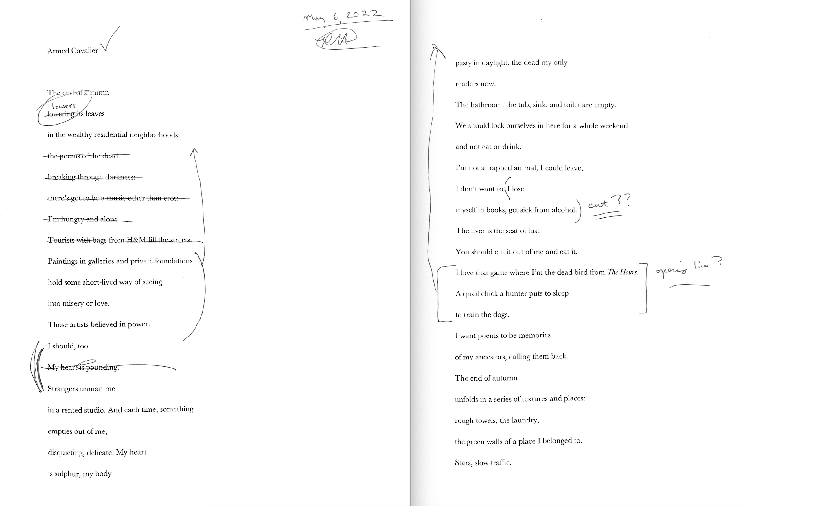 This was a straightforward one. As an train, I generally attempt to write in a type of frenzy, to combat in opposition to my tendency towards class. Writing rapidly, with out strain, permits me to come across concepts and emotions I wouldn’t discover acceptable or worthy or full sufficient in my regular, judgmental mindset. I’m making an attempt to let extra of myself in to the poems—extra ugliness, extra starvation, extra perception. That is how I drafted “Armed Cavalier.” I knew early on that it could be an essential poem for me.