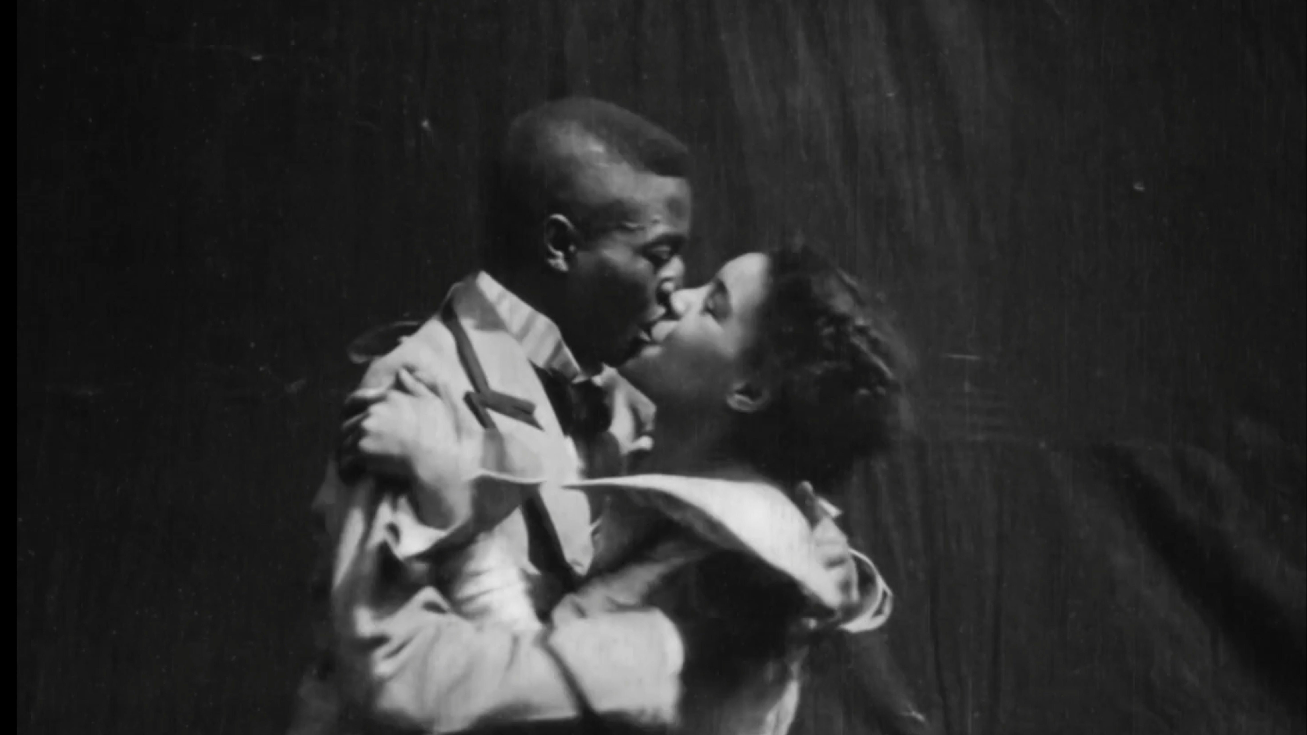 It’s the silent abandon with which they kiss, as if they’re conscious of somebody striding towards them, this somebody’s finger wagging, telling them, “No, no, not right here, cease that now, or I’ll be compelled to separate you, you profligate negroes.” However earlier than this imagined censor can attain them, they pull one another shut and kiss once more, their mouths disappearing into one another, their mouths taking the form of their longing. They contact one another as if they’ve simply been launched from one thing, as if their license to the touch is brief, stolen, or solid. In One thing Good, which options the primary identified on-screen kiss by a Black couple, filmed in 1898, it seems as if the 2 actors, a peach pit–toned Black man sporting a bow tie and jacket and a peach pores and skin–toned Black lady sporting a ruffled collared gown belted on the waist, are touching one another after an extended interval of denial, as if they’ve forgotten what the opposite’s mouth and fingers and neck really feel like and at the moment are voraciously reacquainting themselves with one another. The pit of the peach swaddled by its flesh, turning into complete there on the limb of the day. Voraciously looking for itself, making itself occur—be. No, not fairly voraciously, however with out warning or take care of who’s watching, although they’re each conscious, and we, too, are conscious that somebody is watching their efficiency.
