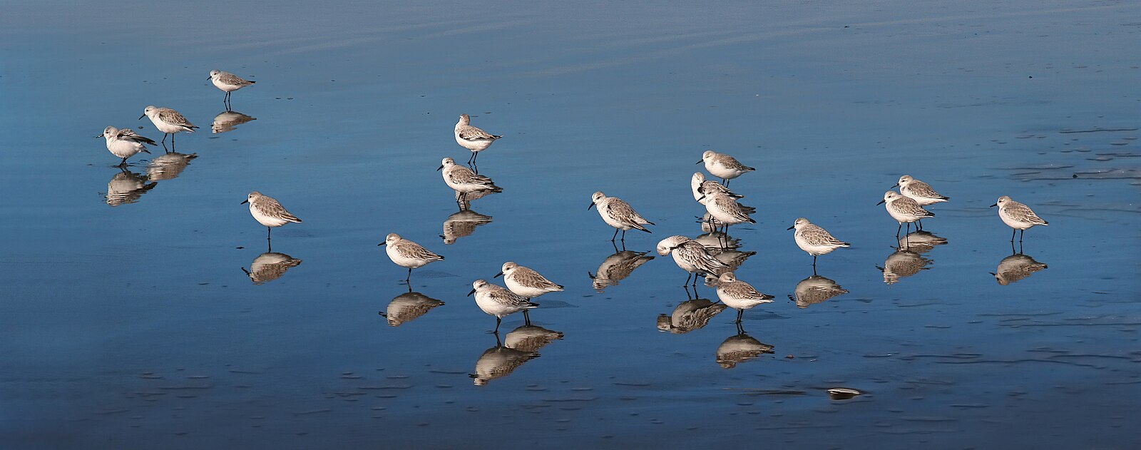 A flock of sanderlings in San Francisco, California, in 2011. Brocken Inaglory, courtesy of Wikimedia Commons. Licensed underneath CCO 3.0.
