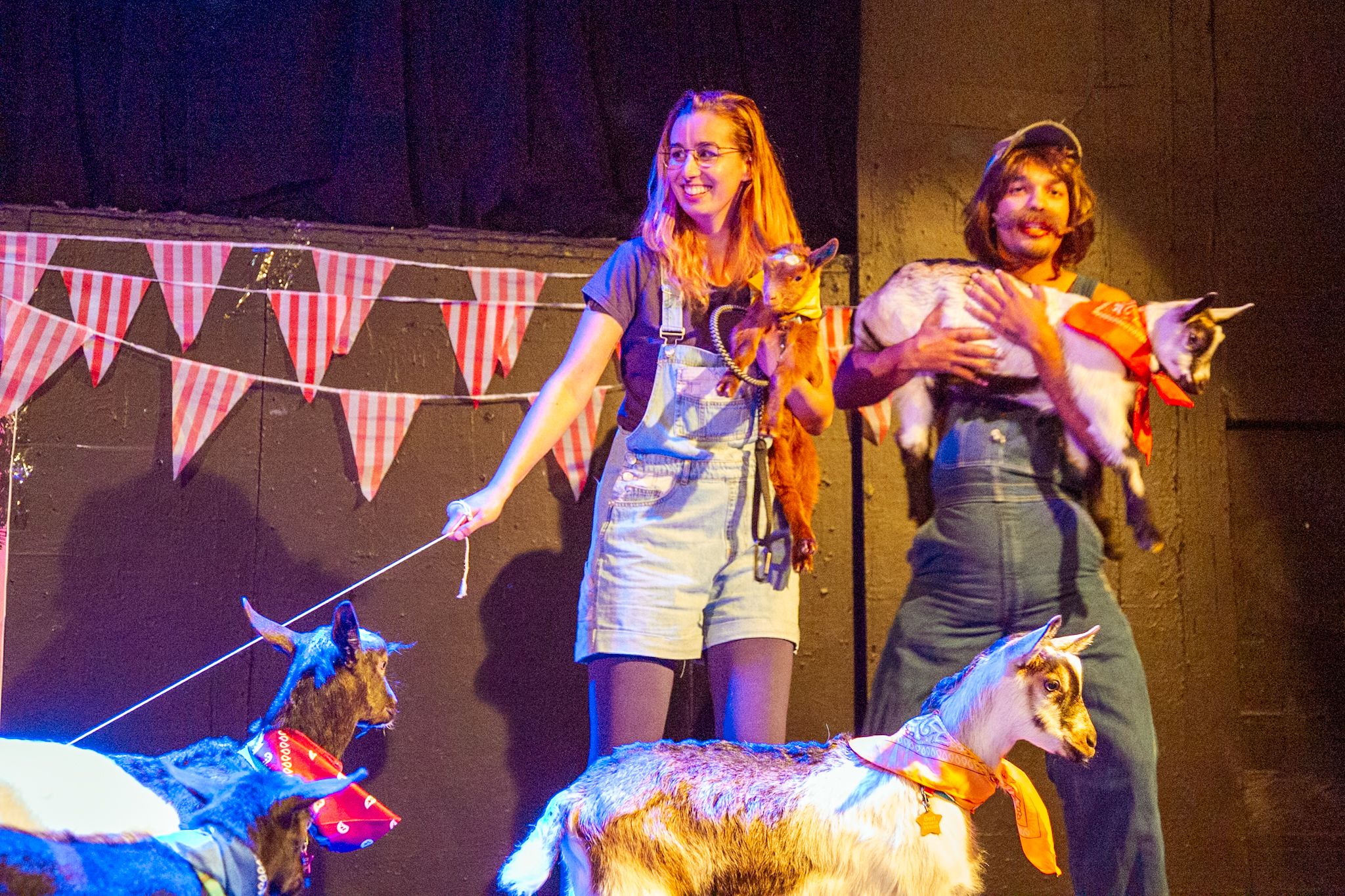 The evening ended with a last session of goat yoga; there’d been three or perhaps 4 classes all through. The entire viewers acquired on the stage, as did all of the clowns. The “yoga teacher” carnival-barked her orders—Downward canine! Little one’s pose!—because the goats jumped on folks’s backs and ran round, chewed on folks’s hair and pissed on the stage as crew members chased them to sop it up with blue towels. Watching the scene from my seat, I noticed that some viewers members’ faces have been caked in their very own clown paint.