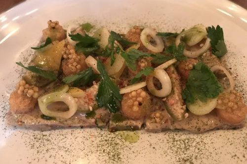 John Talbott (2016) additionally loves the “rondelle of chopped beef tongue topped with an umbrella of overlapping pickled radish slices” and a dish of duck “made Apicius style with grapes and beets” that he calls “greater than excellent, it was out of this world.”