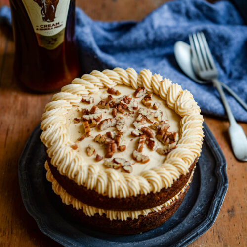 Subsequent make the buttercream, place the butter within the bowl of a meals mixer fitted with the paddle attachment, add the icing sugar and blend on a sluggish velocity till beginning to mix, combine on a better velocity till gentle and fluffy. Then add the Amarula Cream and blend till mixed.